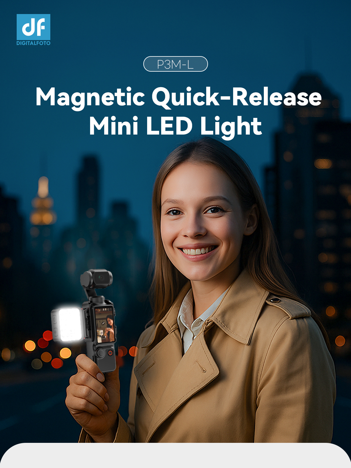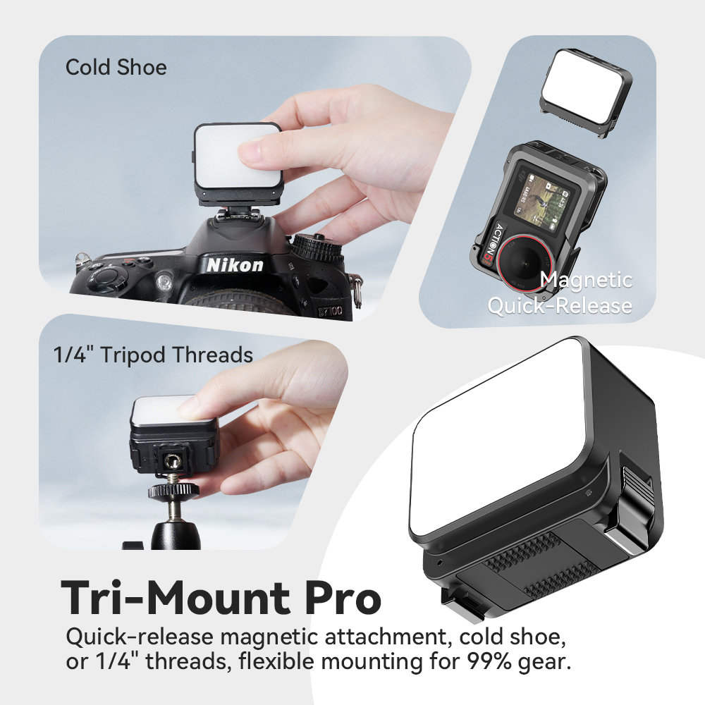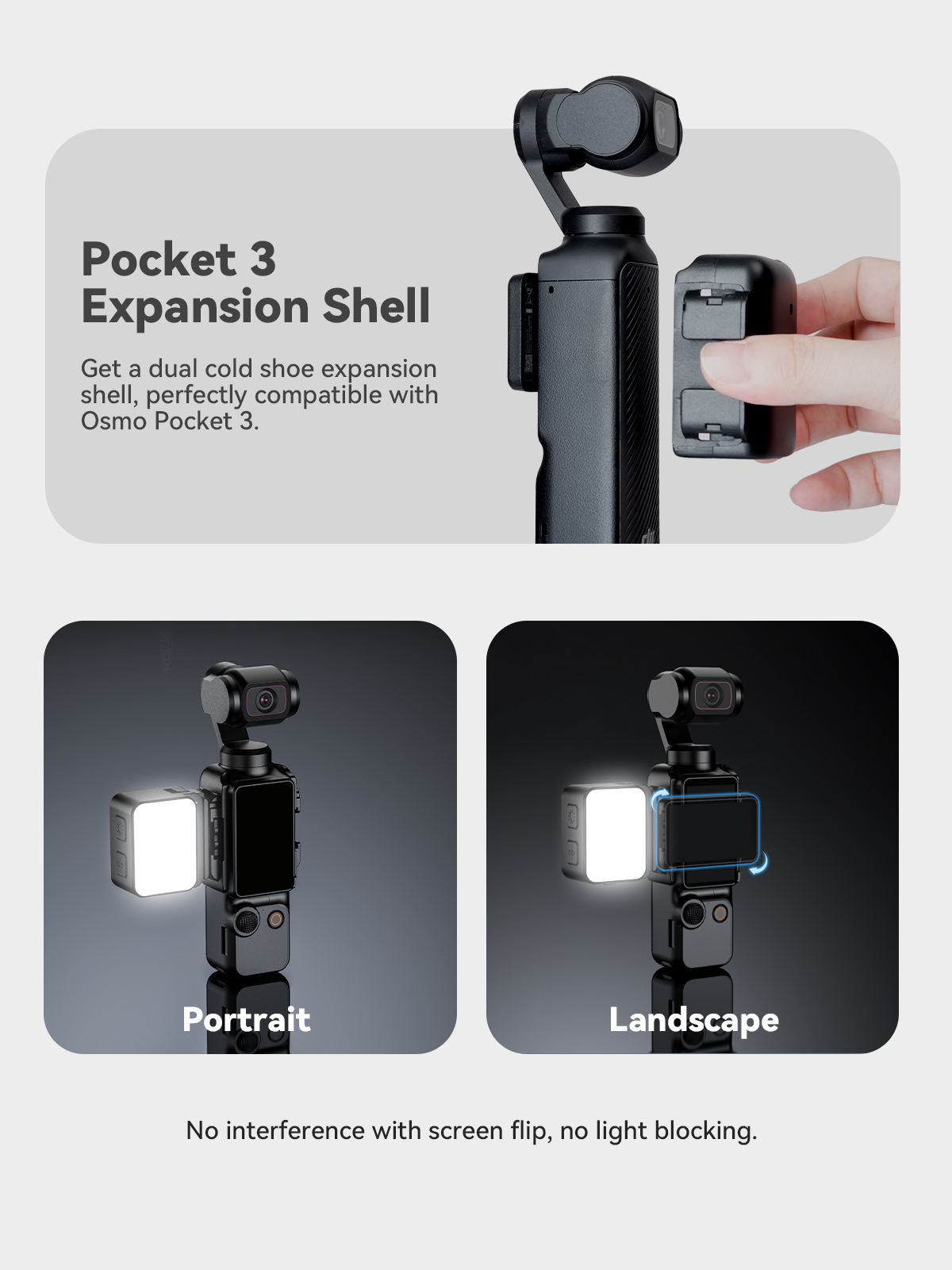 Magnetic Quick-Release Mini LED Light with OSMO POKCET 3 Half Case with Cold Shoe Mount
