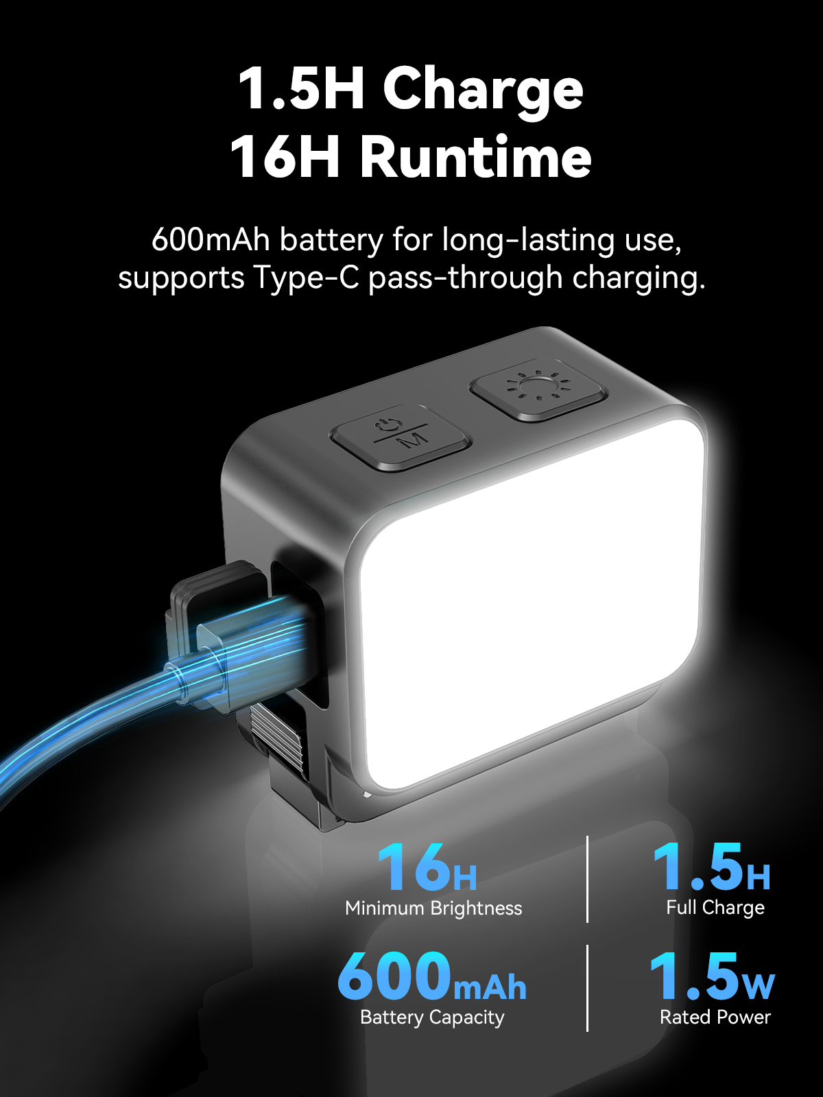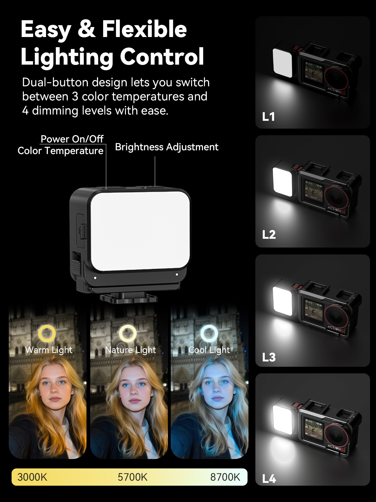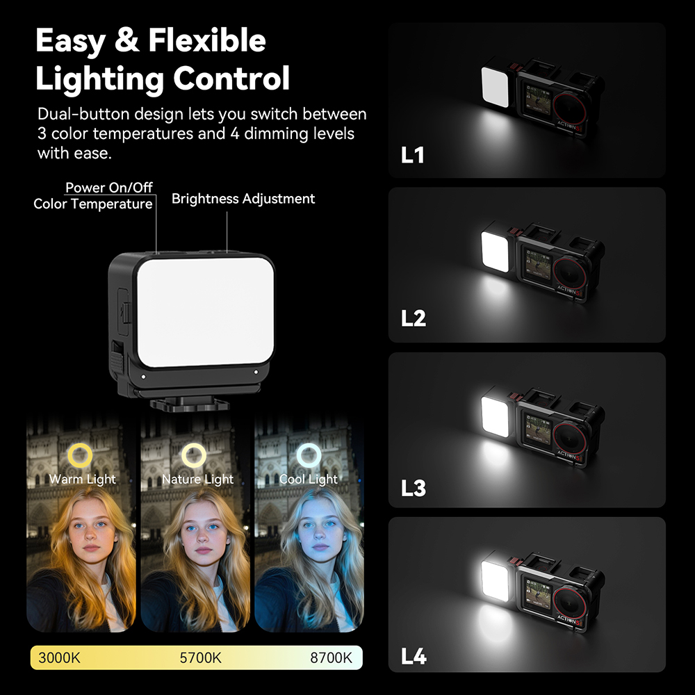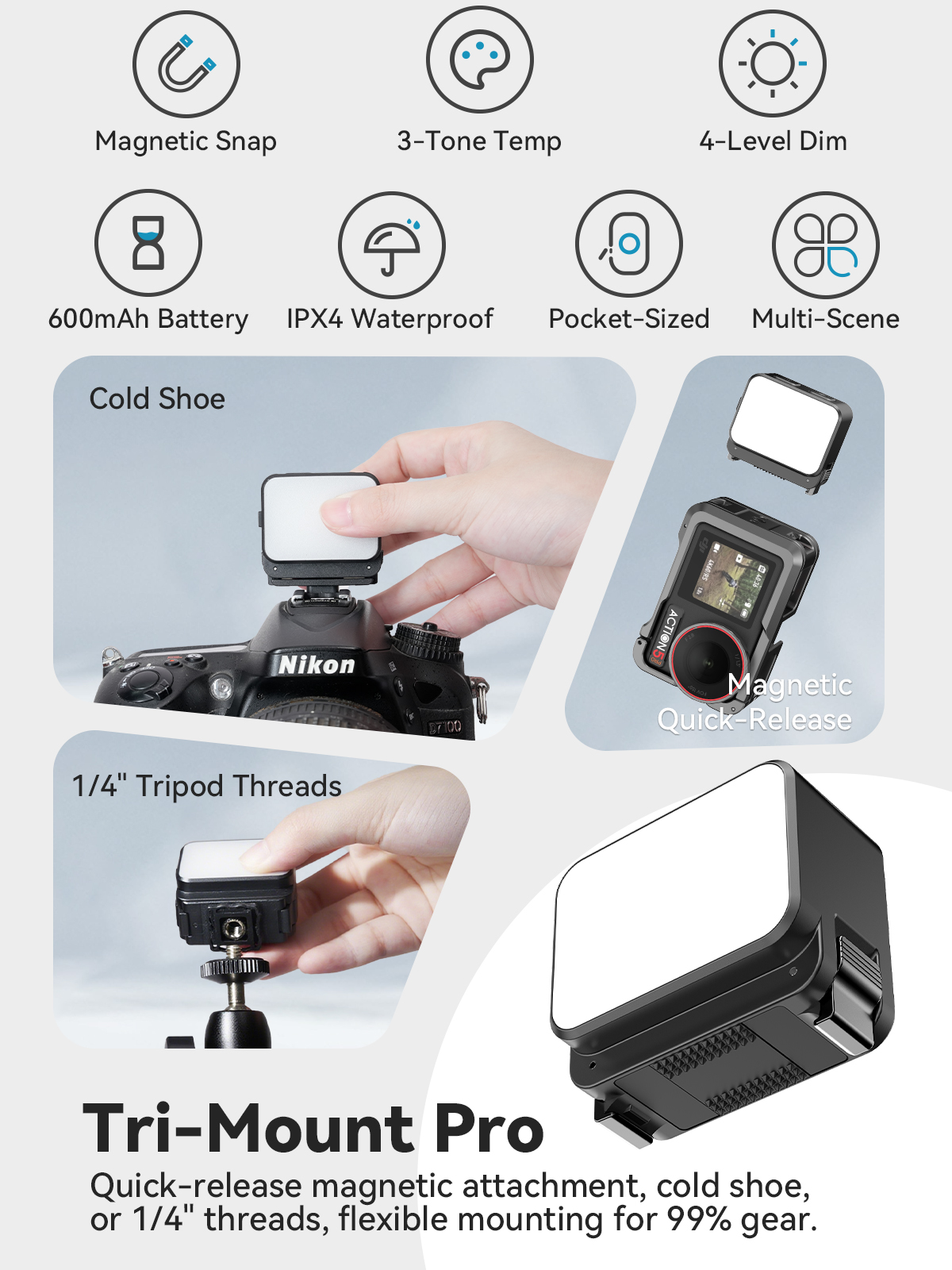 Magnetic Quick-Release Mini LED Light with OSMO POKCET 3 Half Case with Cold Shoe Mount