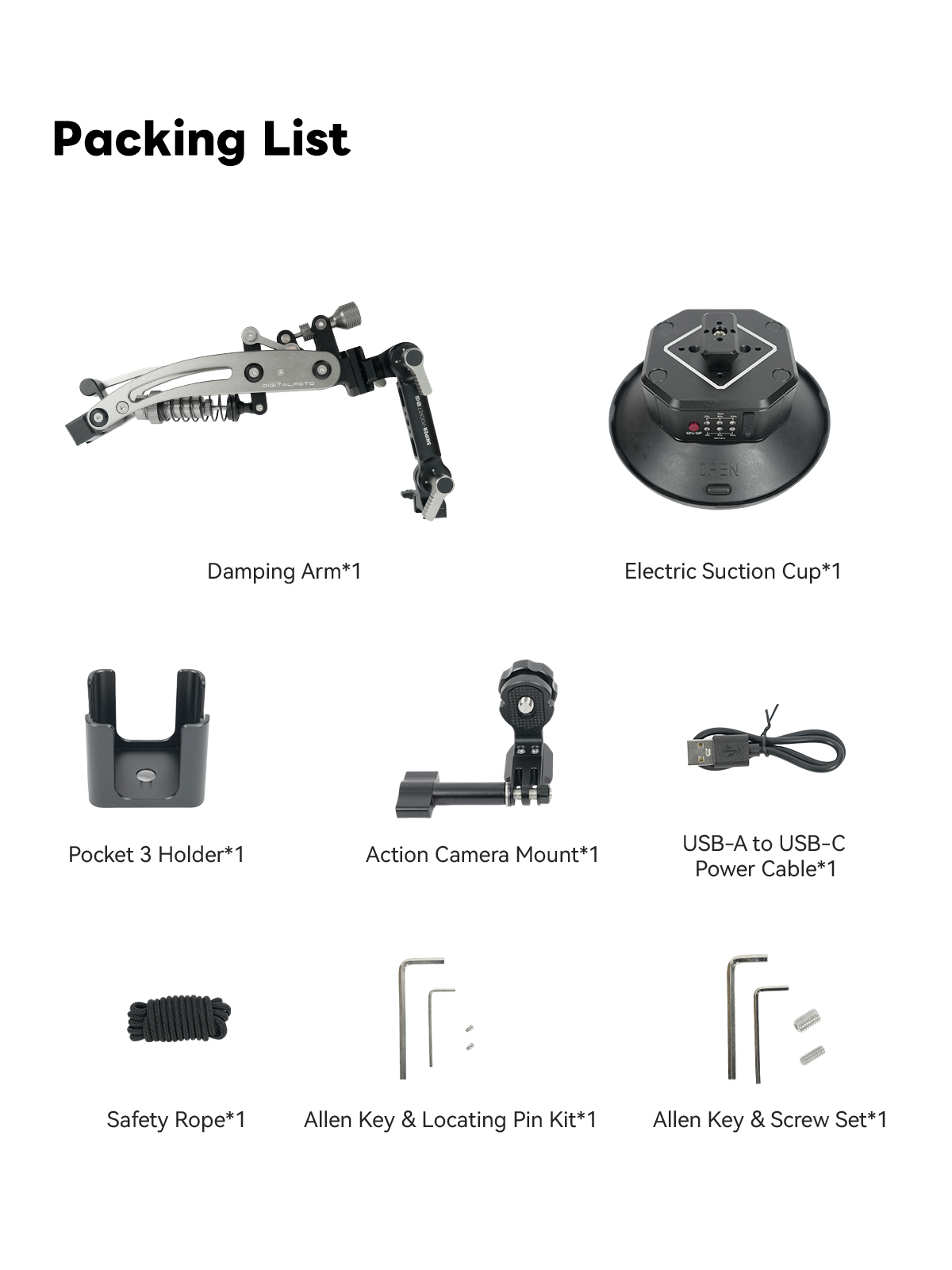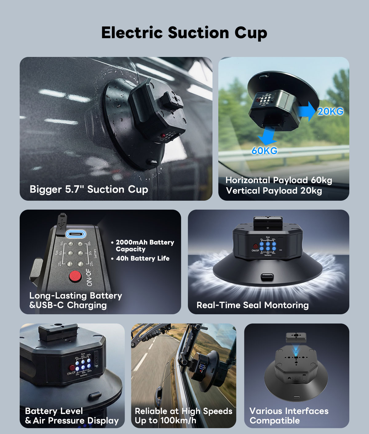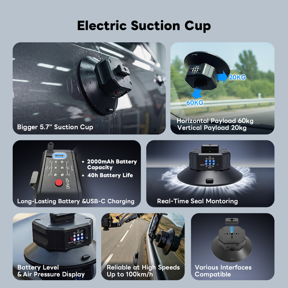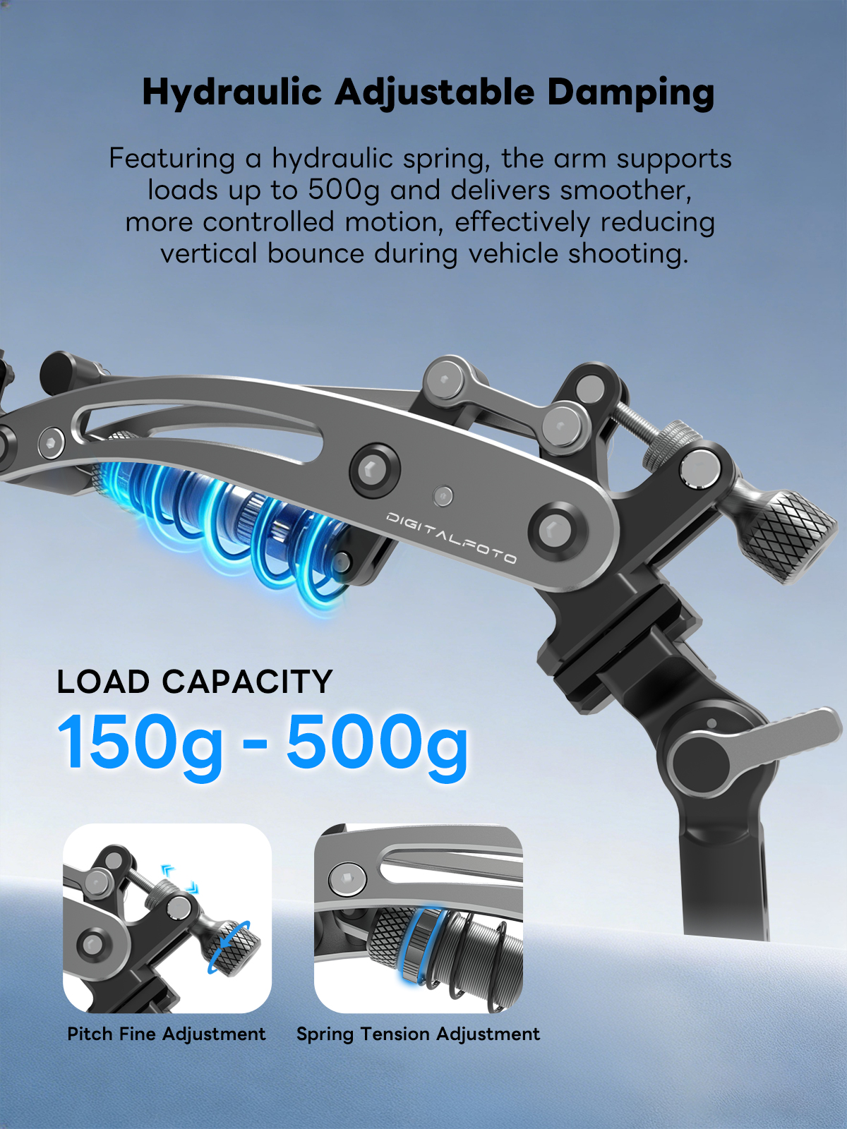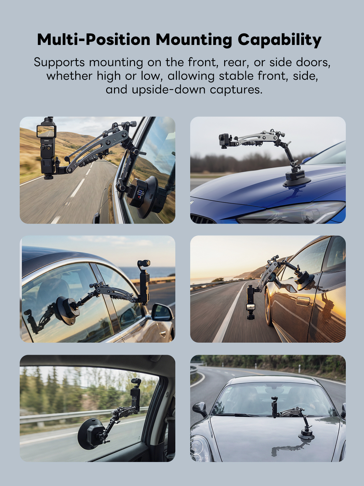 Z-Axis Mini Spring Arm for DJI Osmo Pocket 3, GoPro HERO13 & Insta360 X5 with 5.7" Electronic Suction Cup