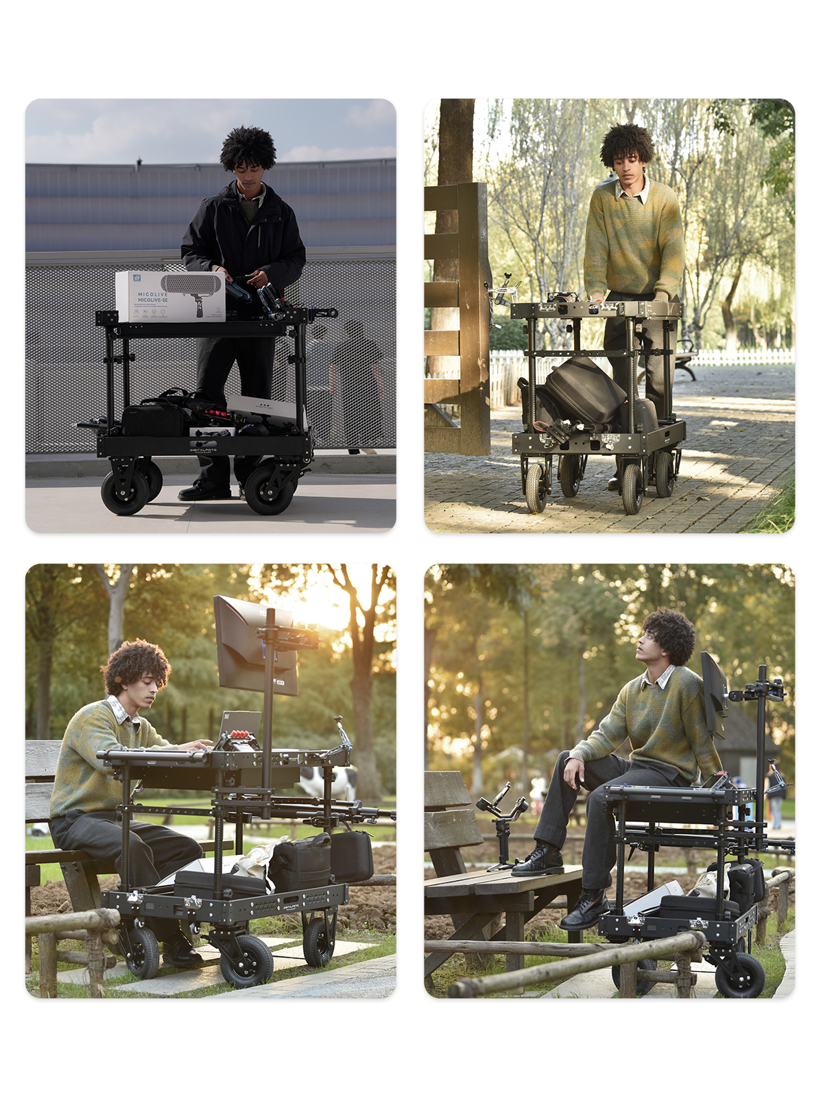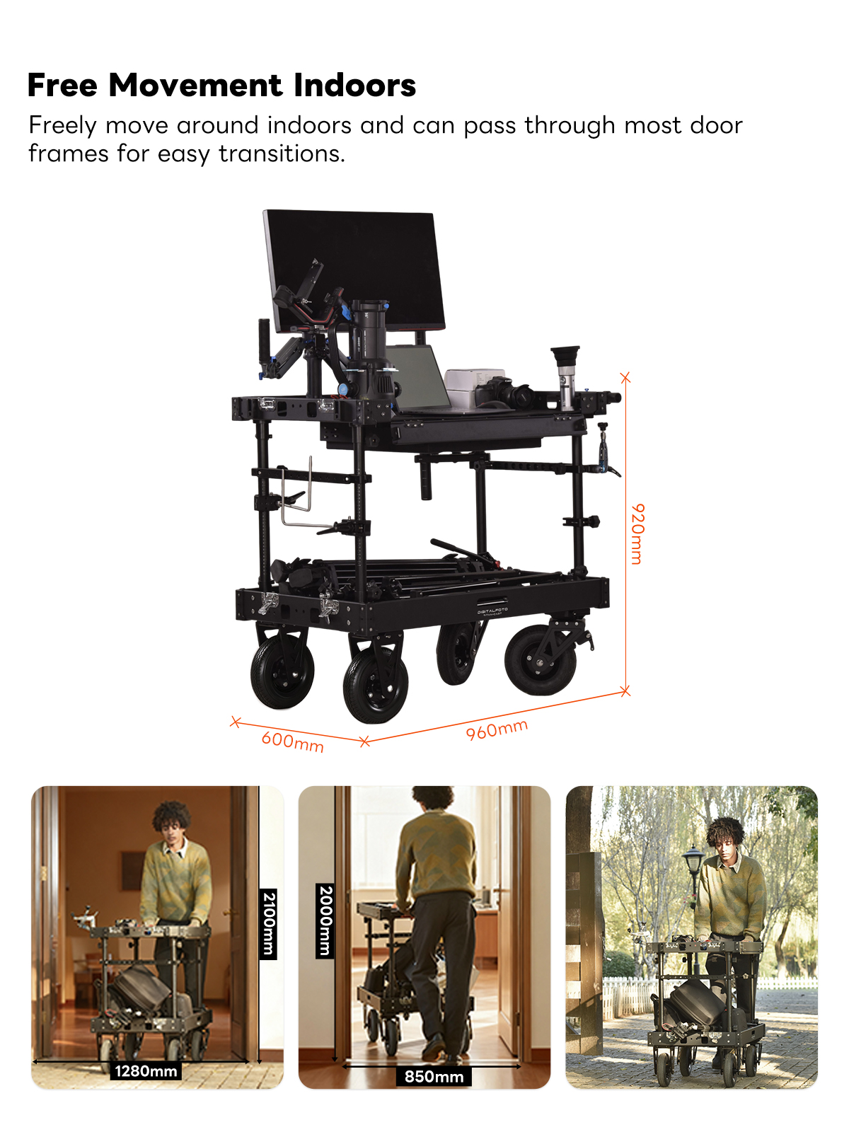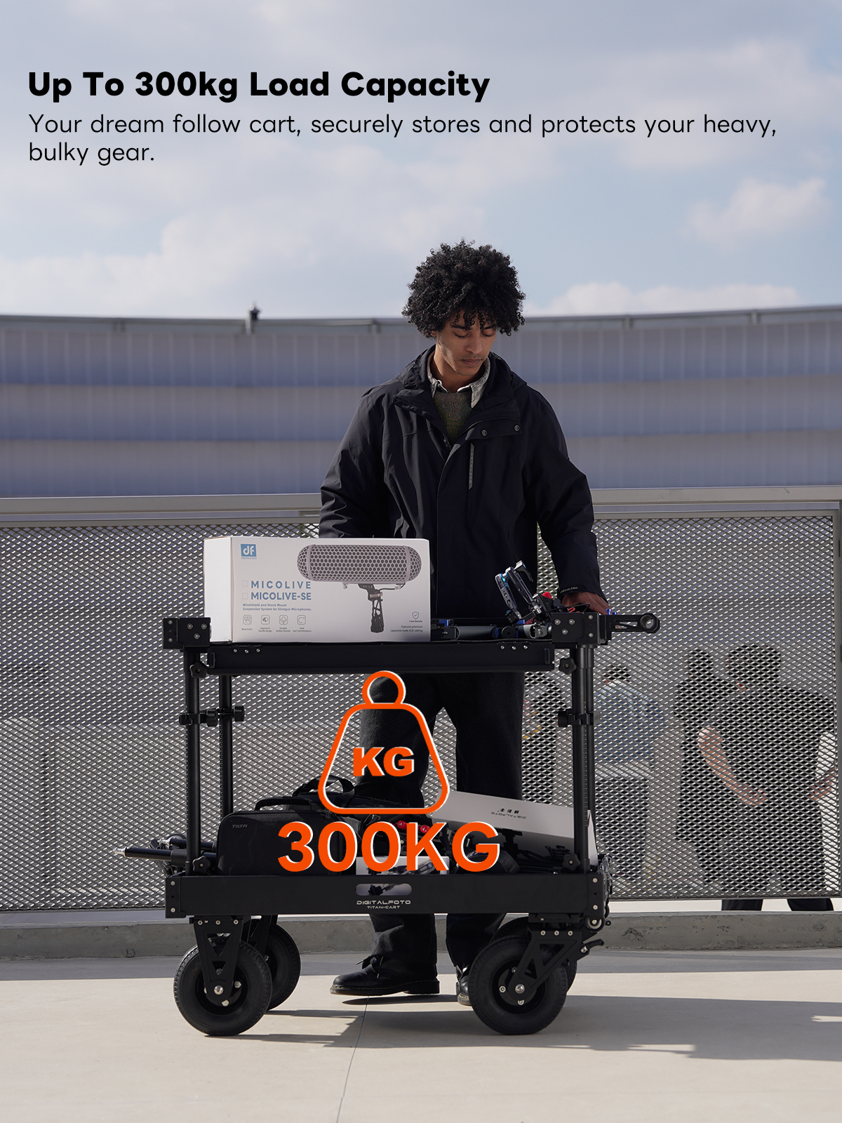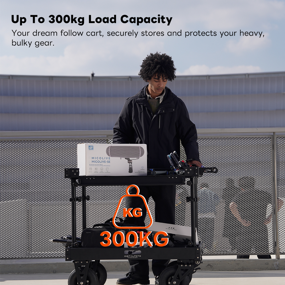 300kg Payload Video Production Camera Cart Collapsible Mobile Workstation 8" Wheel