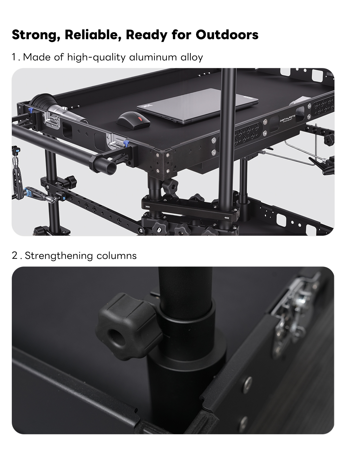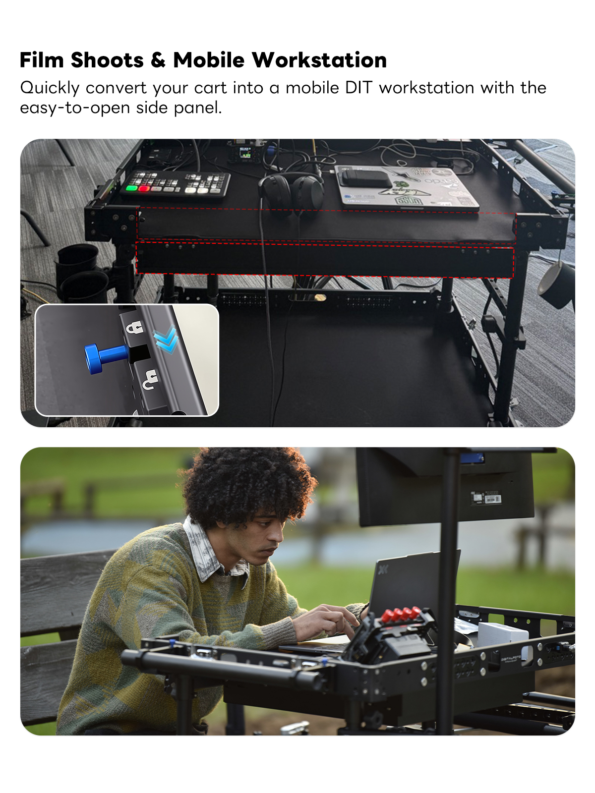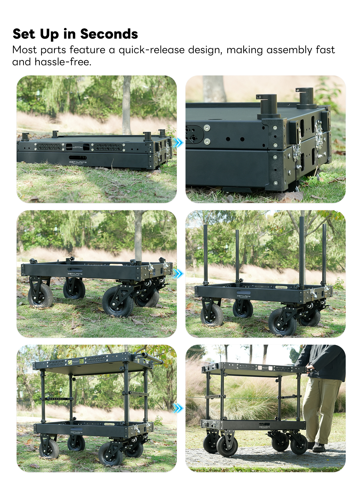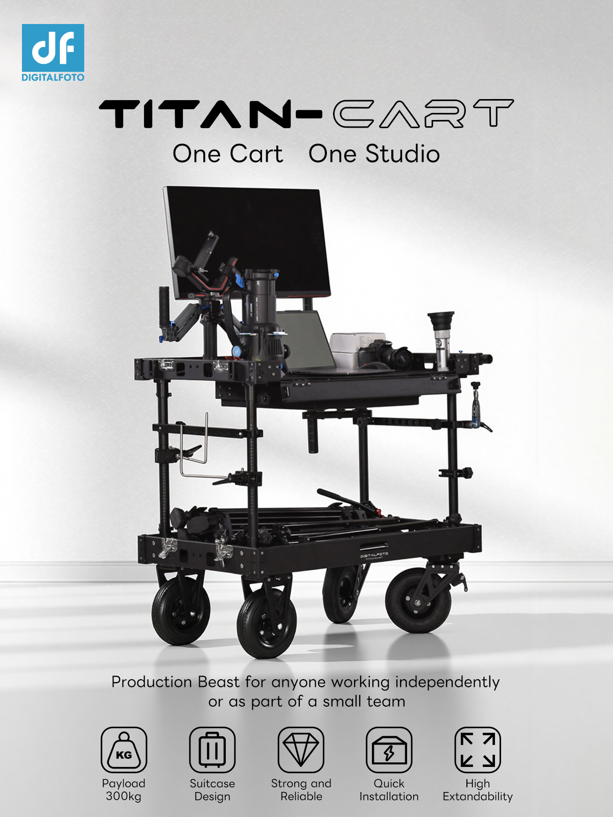 300kg Payload Video Production Camera Cart Collapsible Mobile Workstation 8" Wheel